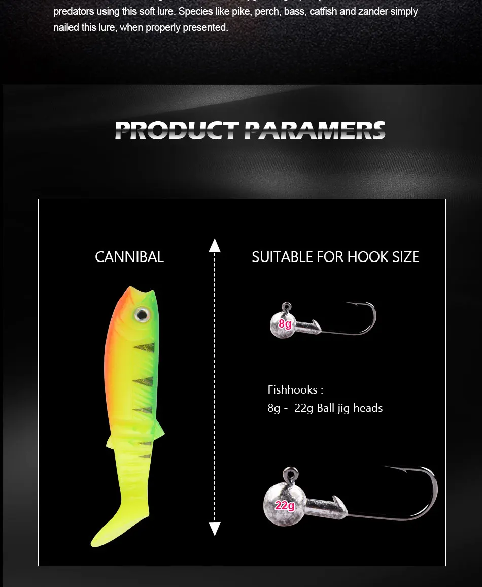 Introducing the 3PCS 22G 12.5Cm Cannibal Soft Lures Shads, a must-have addition to any angler's tackle box. Designed for versatility, these soft fishing baits are perfect for use in various fishing environments, including ocean rock fishing. With a length of 12.5 cm and a weight of 22 grams, these lures mimic the natural movement of prey, making them irresistible to fish. Whether you're targeting bass, trout, or other species, these lures provide an effective solution for both novice and experienced fishermen alike.